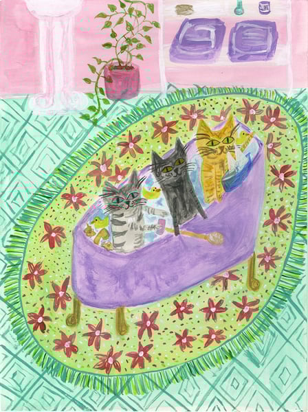 Twenty Siamese cats, all but one named Sam. Limited edition print.