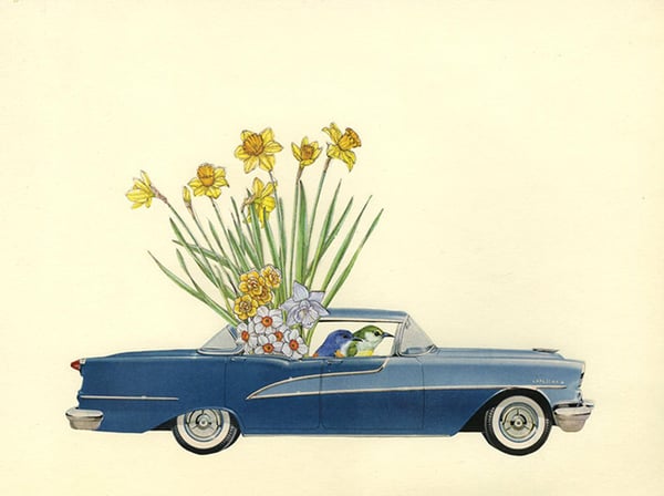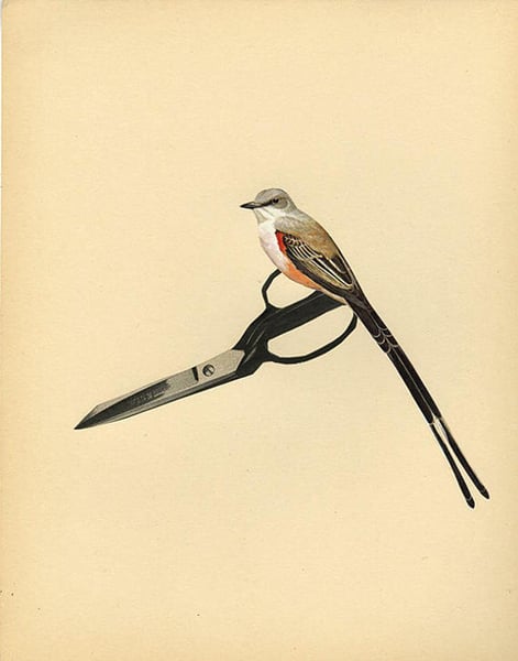 Orange-bellied flower picking peckers. Limited edition collage print.