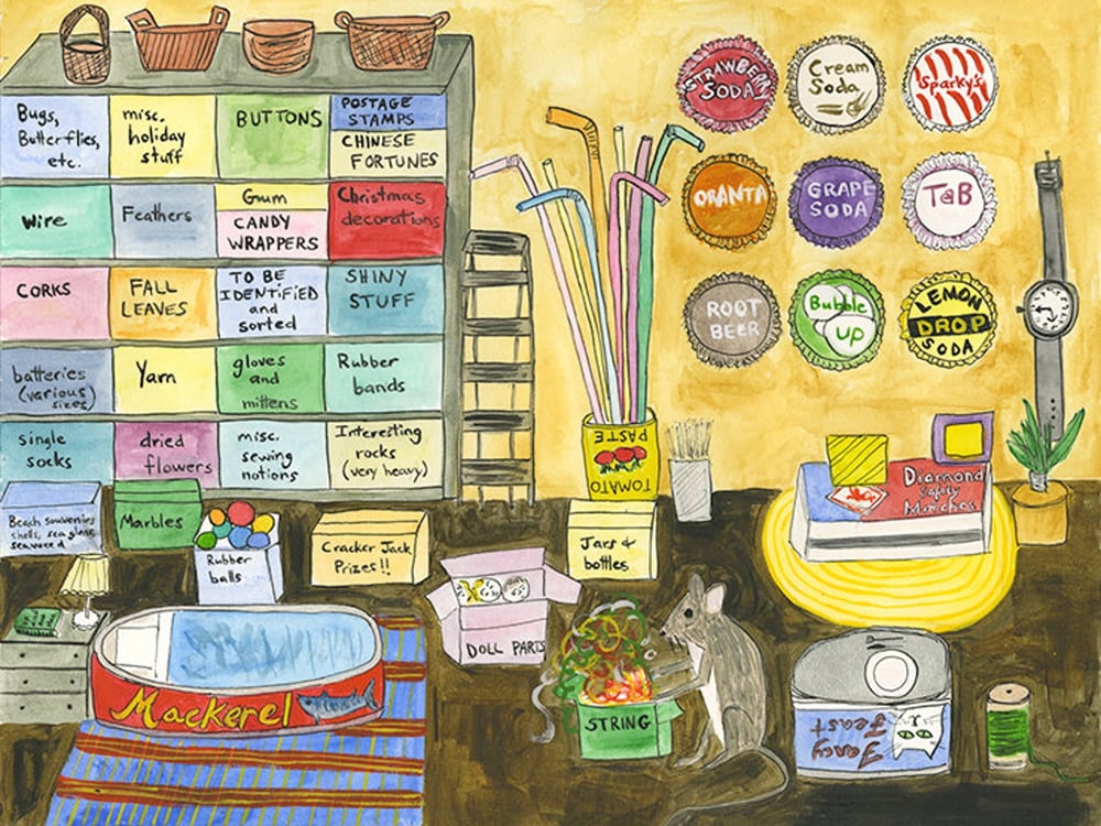 Muriel's collections occupied all of her spare time. Limited edition print.