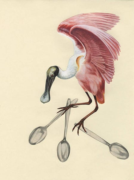 A Carolina wren with a proclivity for pink. Limited edition collage print.